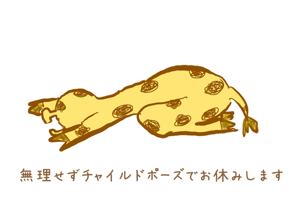 ひざをついてチャイルドポーズで休憩。お疲れさまでした