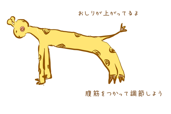 - お腹に力を入れてみて。それでも調節できない場合は筋力が足りていない可能性があります。まずはヒザをついての練習をおすすめします。