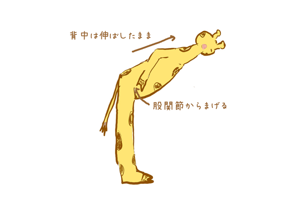 ・腰を曲げるのではなく、太もものつけ根(股関節)から動かす