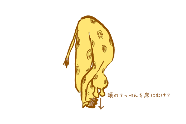 うん、うん、背中は長くのびたぞ。頭のてっぺんを真下に向けるのもできた…